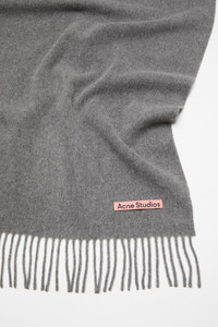 Fringed scarf is crafted from midweight wool with a soft hand-feel, detailed with a pink Acne Studios label. - Fringed ends - Midweight wool - Pink Acne Studios label - Measurements including fringe: 200 cm length; 70 cm width - Fringe measurements: 10 cm approx. - Made in Italy - Style ID: FN-UX-SCAR000217 - Made with certified wool according to the Responsible Wool Standard. Certified to the Responsible Wool Standard (RWS) by Control Union, license number CU-1024001 - Shell: 100% Wool