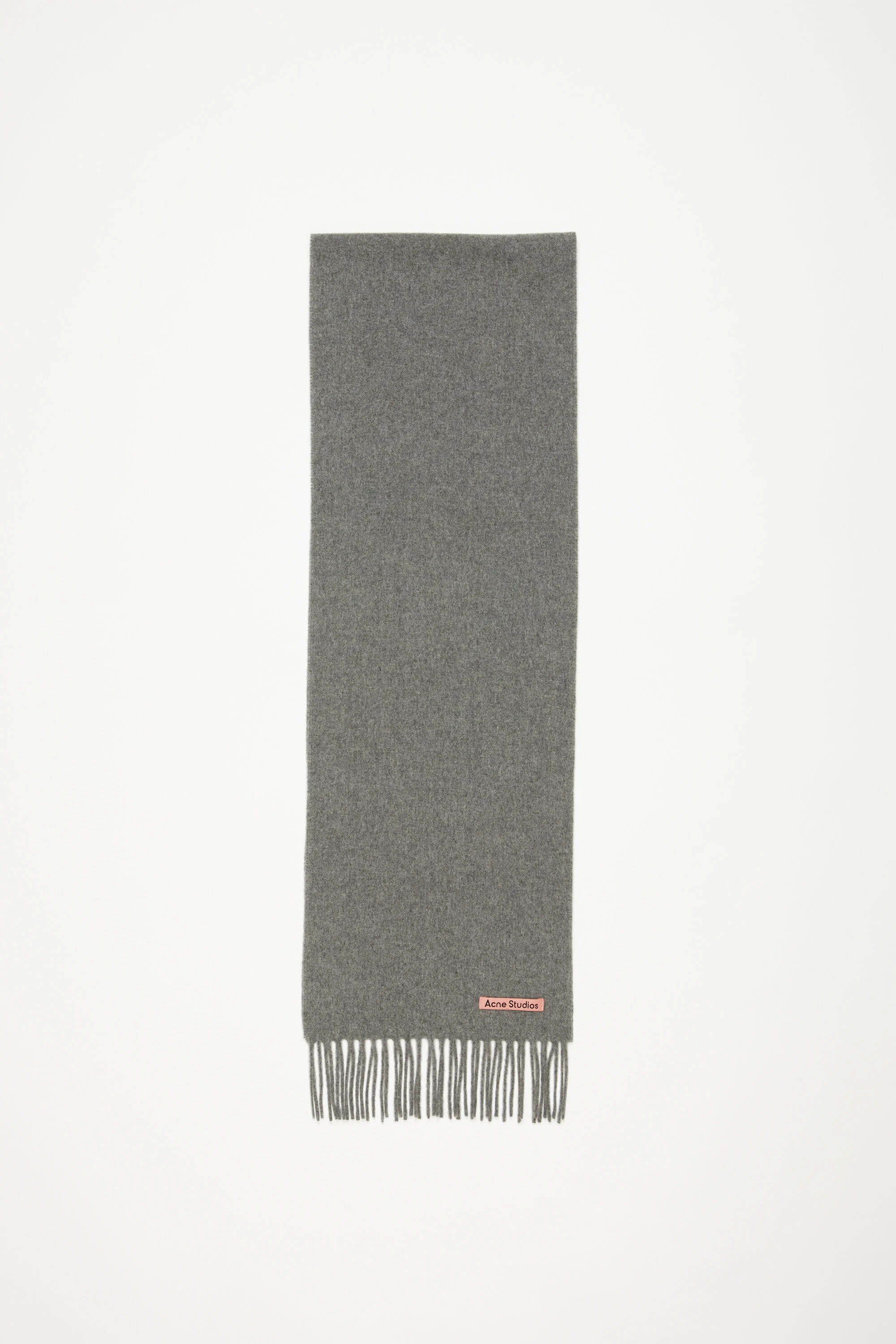 Fringed scarf is detailed with a pink Acne Studios label and crafted from midweight wool. - Fringed ends - Midweight wool - Pink Acne Studios label - Measurements including fringe: 190 cm x 28 cm - Fringe measurements: 7 cm approx. - Made in Italy - Style ID: FN-UX-SCAR000219 - Made with responsible wool. - Shell: 100% Wool