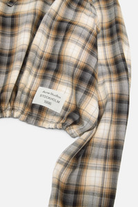 Hooded overshirt jacket features a flannel check pattern and branded logo tab at the front. Designed with a centre front button-up closure and shirt cuffs. Complete with drawcords at the hood and hem and side seam pockets. Cut to a relaxed fit and hip length. - Relaxed fit - Hip length - Hooded with drawcords - Centre front button closure - Side seam pockets - Logo tab - Model is 177 cm / 5'10 and wears a size 36 - Style ID: FN-WN-BLOU001157 - Shell: 100% Preferred viscose