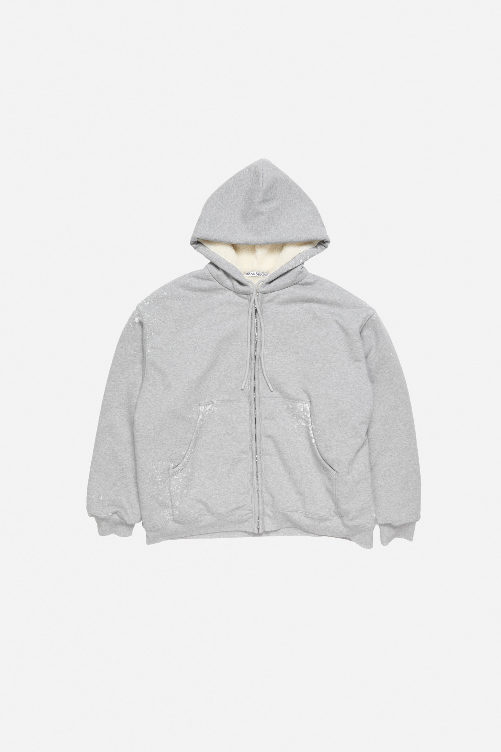Zip-up sweatshirt with a hood, made from soft fleece fabric that has a worn, vintage look. Features a relaxed, slouchy shape and a soft lining for comfort. Finished with a logo design on the back. Cut for a relaxed fit and hip length. - Relaxed fit - Hip length - Hood - Logo design on back - Fully lined - Kangaroo pockets - Ribbed cuffs and hem - Front zip closure - Model is 178 cm / 5'8 and wears a size S - Style ID: FN-WN-SWEA000263 - Shell: 41% Polyester, 59% Cotton, Lining: 100% Polyester