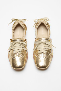 Lace-up shoes inspired by the ballerina silhouette, crafted from foiled calf leather with a tumbled finish. Designed with a round toe, seamless rubber sole, and decorative lacing at the back. Finished with Acne Studios logo on the tongue. - Foiled leather - Lace-up at the front - Decorative lacing at the back - Logo on the tongue - Round toe - Sole height: 5 mm - Style ID: FN-WN-SHOE001118 - Uppers: 100% Lamb leather, Lining: 100% Lamb leather, Soles: 100% Thermoplastic polyurethane