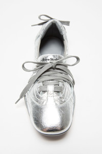 Lace-up shoes reimagine the ballerina silhouette crafted in foiled nappa leather and decorative lacing at the back. Crafted from suede leather and seamless rubber soles. - Foiled leather - Lace-up at the front - Decorative lacing at the back - Sole height 0.5 mm - Style ID: FN-WN-SHOE000998 - Uppers: 100% Lamb leather, Lining: 100% Lamb leather, Soles: 100% Thermoplastic polyurethane