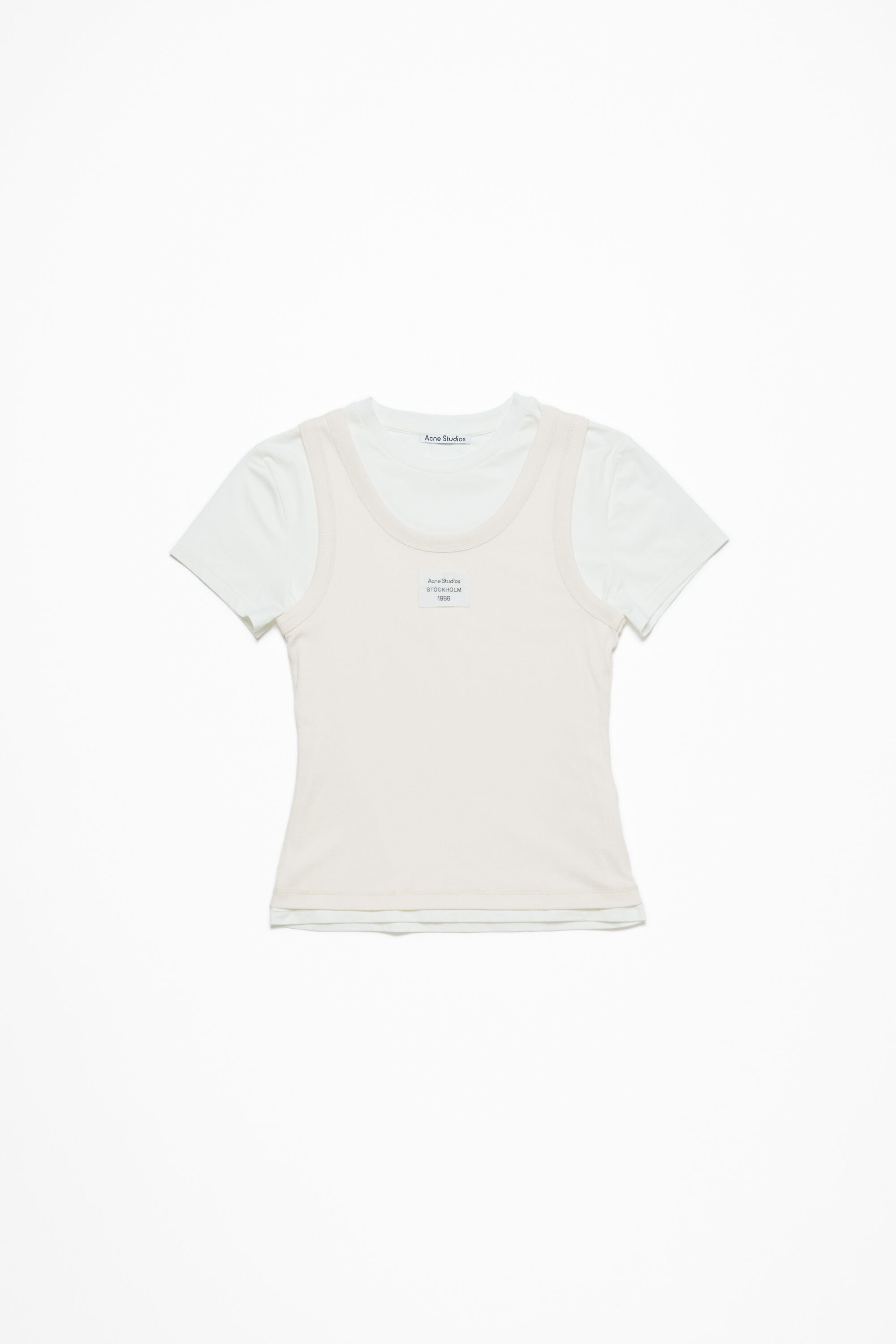 Layered t-shirt features an Acne Studios logo label at the front. Constructed with a fitted t-shirt and tank top - Fitted fit - Crew neck - Layered construction - Acne Studios logo - Female model is 178 cm / 5'10 and wears a size S - Style ID: FN-WN-TSHI000709 - Shell: 90% Organic cotton, 10% Elastane, Contrast: 96% Organic cotton, 4% Elastane