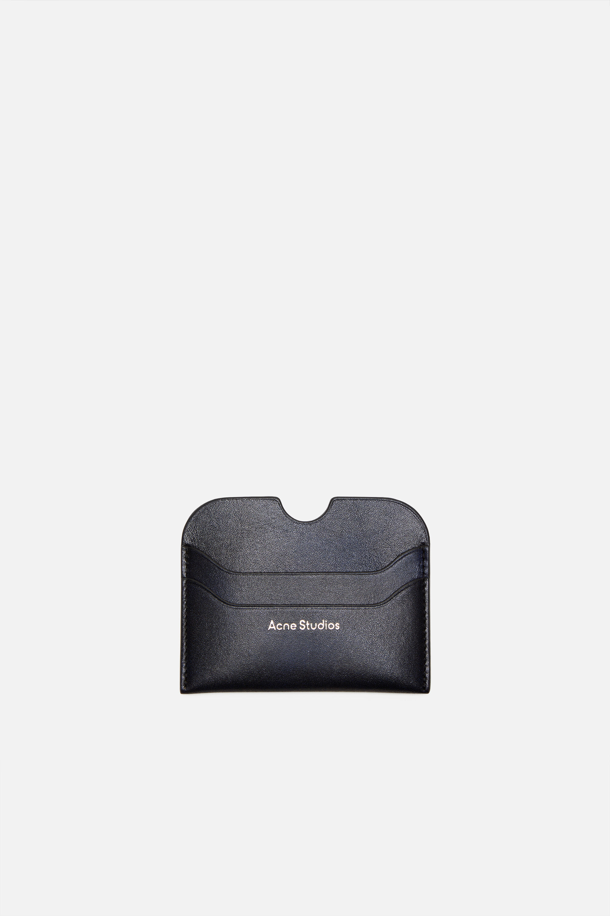 Card holder wallet features a slim construction, crafted from soft leather and detailed with a silver-embossed Acne Studios logo. It includes five card slot compartments distributed across the front and back. - Slim construction - Five card slot compartments - Embossed Acne Studios logo - Measurements: 80 mm; 102 mm; 5 mm - Style ID: FN-UX-SLGS000287 - Shell made from leather from a Leather Working Group (LWG) certified tannery with Silver rating - Shell: 100% Calf leather, Lining: 100% Calf leather