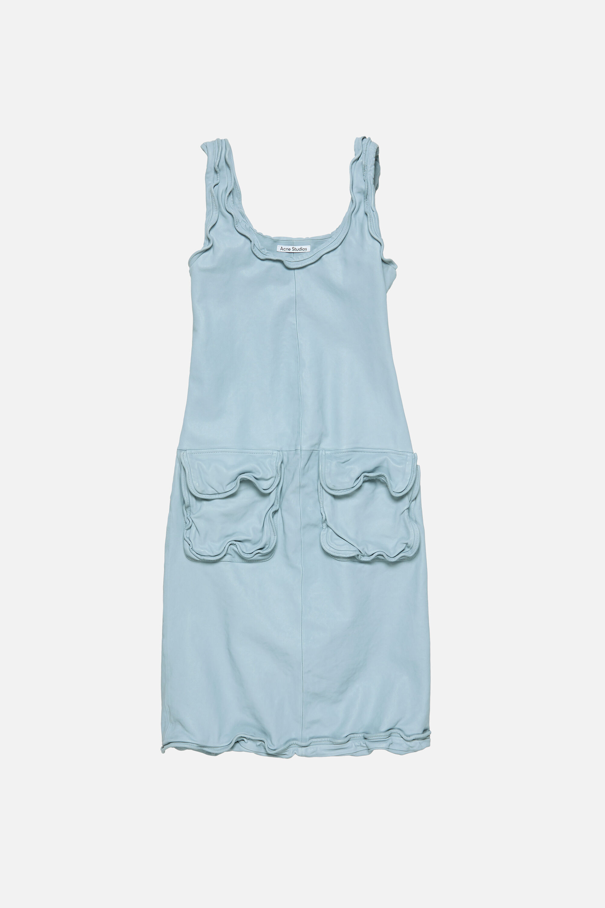 Dress crafted from soft lamb leather, featuring a sculptural wavy construction. Detailed with piped wave accents at the neckline, armholes, hem, and oversized patch pockets at the hips. Finished with an invisible zip and Acne Studios logo label at the back neckline. Cut to a regular fit and knee length. - Regular fit - Knee length - Wavy piping throughout - Oversized patch pockets - Invisible zip closure - Acne Studios logo label - Model is 178 cm / 5'8 and wears a size 36 - Style ID: FN-WN-DRES001535 - Shell: 100% Lamb leather, Lining: 100% Viscose
