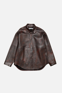 Shirt jacket crafted from soft leather with an Acne Studios embossed logo patch at the back. Finished with a center-front snap button closure. Cut for a relaxed fit and mid-thigh length. - Relaxed fit - Mid thigh length - Snap button closure - Side pockets - Acne Studios embossed logo patch - Model is 187 cm / 6'1" and wears a size 46 - Style ID: FN-MN-LEAT000295 - Shell made from leather from a Leather Working Group (LWG) certified tannery with Gold rating - Shell: 100% Preferred lamb leather