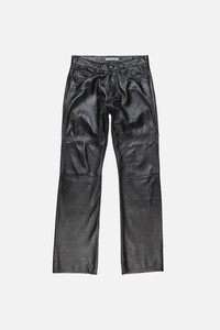 Trousers crafted from full-grain lamb leather, designed with a classic 5-pocket construction and zip fly. Cut to a regular fit with a slight flare from the knee. - Leather trousers - Regular fit - Slight flare from the knee - 5-pocket construction - Zip fly - Model is 186 cm / 6' and wears a size 46 - Style ID: RW-MN-TROU000016 - Shell made from leather from a Leather Working Group (LWG) certified tannery with Silver rating - Shell: 100% Lamb leather, Lining: 50% Viscose, 50% Acetate