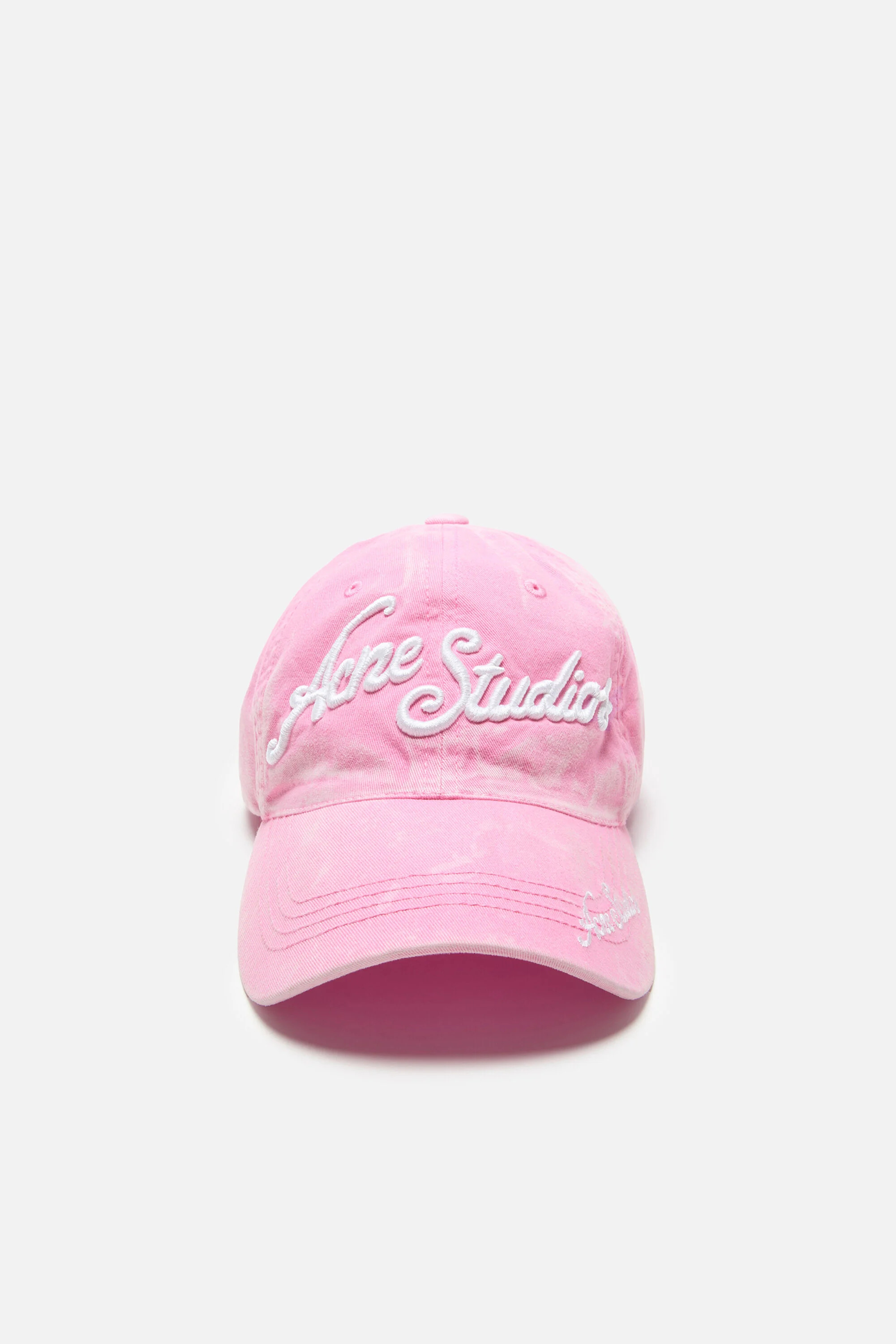 Baseball cap features a seasonal Acne Studios 3-D embroidered logo, crafted from washed twill cotton and detailed with an adjustable D-ring. - Embroidered logo - Curved brim - Adjustable d-ring closure - Embroidered eyelets - Measurements: 59 cm - Style ID: FN-UX-HATS000339 - Made from organically grown cotton - Shell: 100% Organic cotton, Lining: 100% Organic cotton