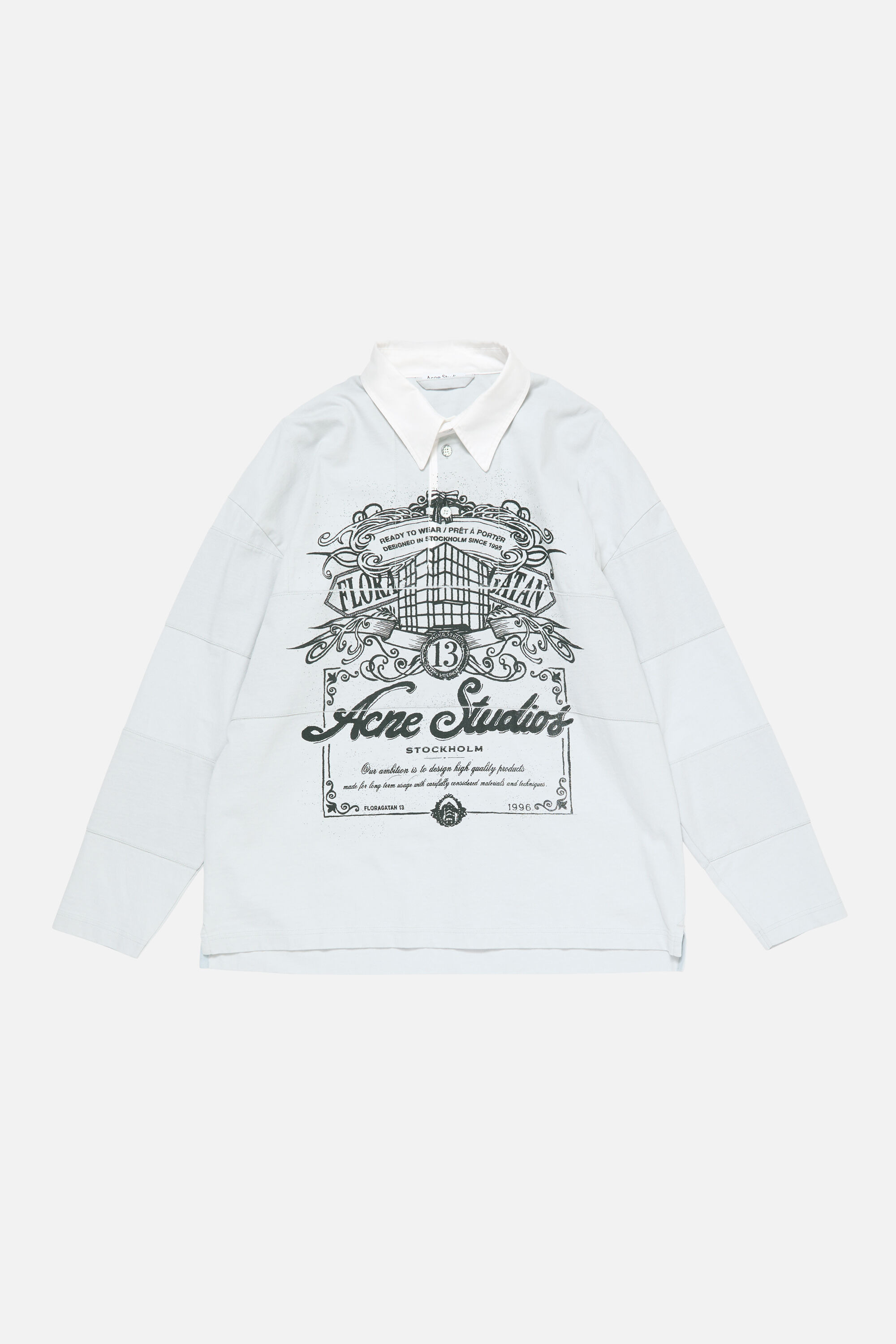 T-shirt with a polo neck, featuring Acne Studios' Floragatan artwork print on the front and contrast stitching details. Finished with a three-button closure. Cut to a relaxed, unisex fit and hip length. - Relaxed unisex fit - Hip length - Polo neck with three button closure - Acne Studios Floragatan artwork print - The female model is 178 cm / 5’8" and wears a size XS - The male model is 189 cm / 6′2" and wears a size M - Style ID: FN-UX-TSHI000142 - Made with organically grown cotton - Shell: 100% Cotton