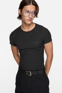 Short-sleeve crewneck t-shirt crafted from an organic cotton jersey blend with an irregular surface for a vintage-inspired feel. Featuring an Acne Studios 1996 stamp logo and a ribbed neckline, it is cut to a fitted silhouette and sits below the waist. - Crewneck t-shirt - Fitted silhouette - Below waist length - Acne Studios 1996 stamp logo - Style ID: FN-UX-TSHI000243 - Made from organically grown cotton - Shell: 85% Cotton, 15% True hemp