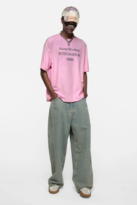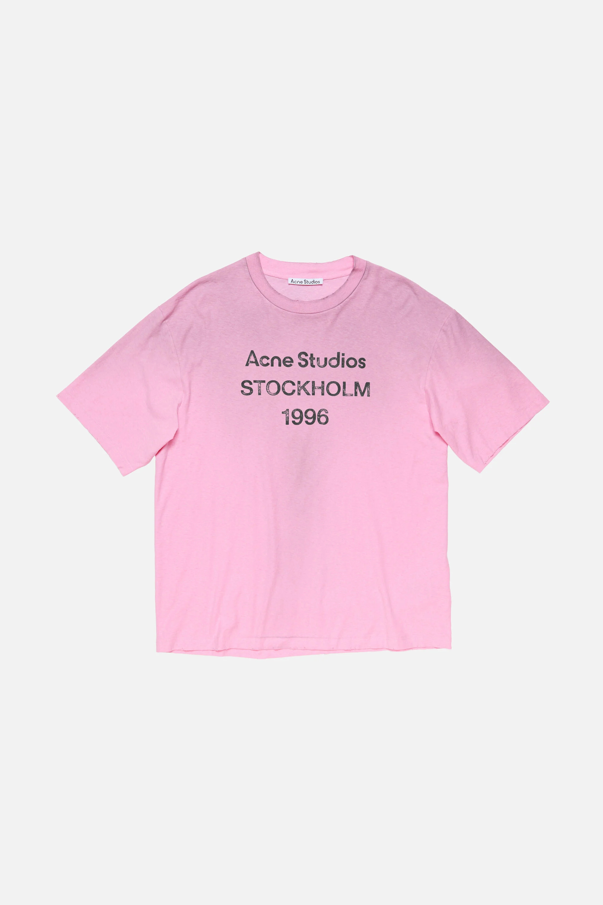 Crew neck t-shirt is cut to a relaxed unisex fit. Detailed with an Acne Studios 1996 stamp logo, distressed neckline, cuffs and bottom hem. Crafted from cotton with a sprayed vintage finish. - Relaxed unisex fit - Crew neck - Sprayed - Acne Studios 1996 logo - Female model is 180 cm / 5′11 and wears a size S - Male model is 188 cm / 6′2 and wears a size M - Style ID: FN-UX-TSHI000013 - Made from organically grown cotton. - Shell: 85% Organic cotton, 15% True hemp