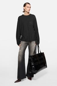 Long-sleeve crewneck t-shirt crafted from an organic cotton blend, featuring the Acne Studios 1996 logo print on the chest pocket. Cut to a relaxed unisex fit with a hip-length hem. - Shell: 85% Cotton, 15% True hemp