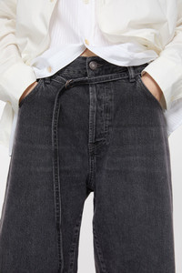 Shorts are cut to a loose unisex fit with a low to mid-waist, matching thin belt, straight leg and knee length. Made of non stretch denim in black wash with a vintage finish. - Loose fit - Low to mid waist - Straight leg - Knee length - Thin belt - 5-pocket construction - Button fly - Female model is 177 cm/ 5'11" and wears a size XS - Model is 188 cm / 6′2 and wears a size M - Style ID: FN-UX-SHOR000012 - Made from organically grown cotton. - Shell: 100% Cotton, Patch: 100% Cow leather