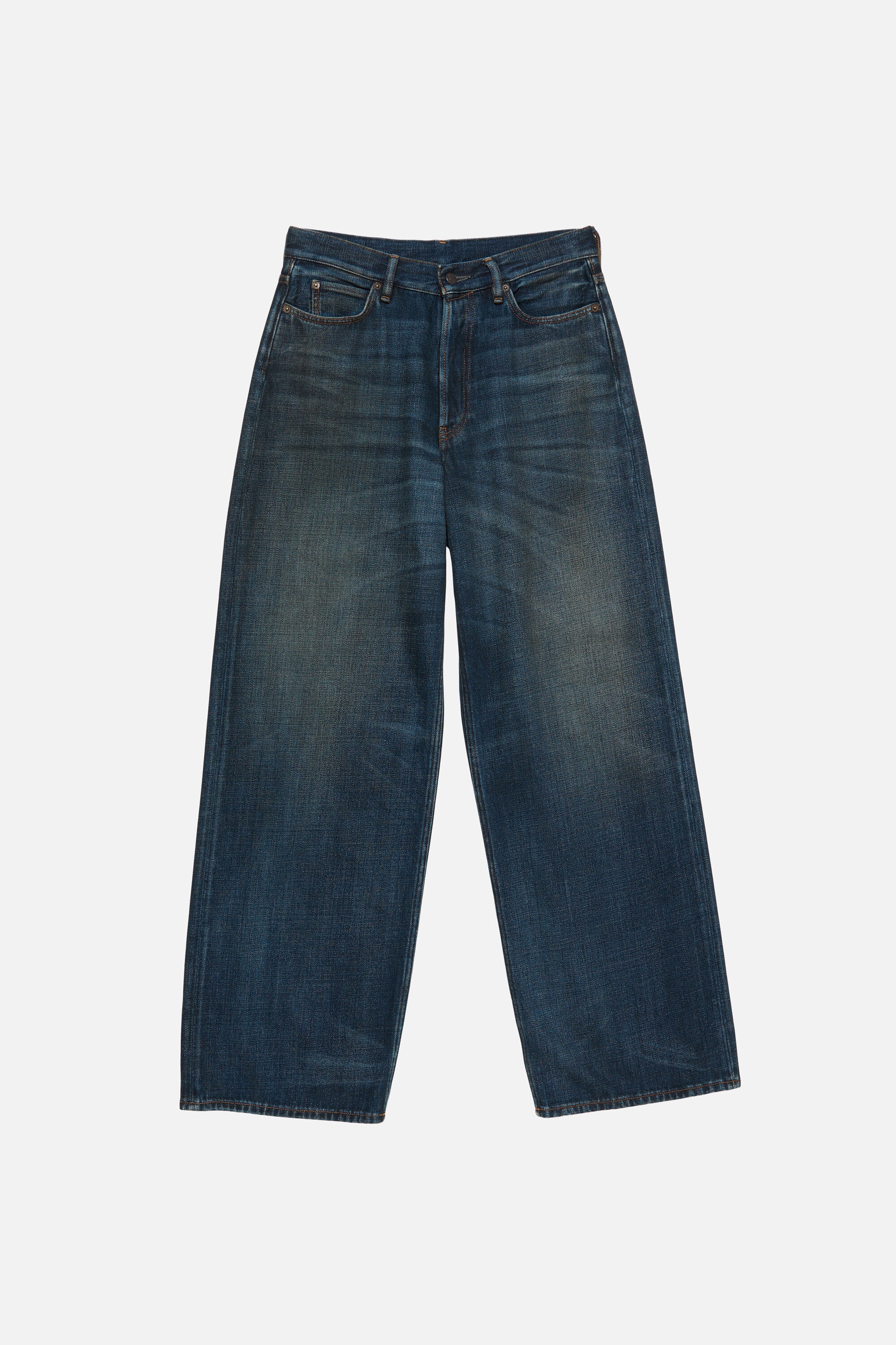 1981 jeans are cut to a loose fit with a low waist, wide leg and long length. Crafted from non stretch denim in a dark blue wash. - Loose fit - Low waist - Wide, baggy leg - Long length - Back leather logo patch - 5-Pocket construction - Button fly - Female model is 180 cm / 5'9 and wears a size Small, Regular corresponds to a size 36 and 27 denim - Male model is 188 cm / 6′2 and wears a size Small, Regular corresponds to a size 46 and 29 denim - Style ID: Acne Studios 1981 U Yoyogi - Shell: 100% Cotton, Patch: 100% Cow leather