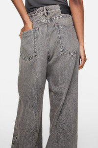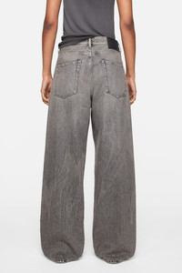 Jeans feature a mid-tone eco wash with ragged and tied effects on loose-constructed black denim, making each garment unique. 1981 jeans are cut to a loose fit with a low to mid waist, long length, wide baggy leg, and finished with a button fly. - Loose fit - Low to mid waist - Long length - Wide baggy leg - 5-pocket construction - Button fly - Female model is 178 cm / 5'8 and wears Small/Regular: size 36, denim 27 waist/32–34 length. - Male model is 188 cm / 6'1 and wears Small/Regular: size 46, denim 29 waist/32–34 length. - Unisex jeans are designed to sit low on the waist. For a higher rise, we recommend selecting one size down. - Style ID: Acne Studios 1981 U Gothik - Made with organically grown cotton - Shell: 82% Cotton, 18% Lyocell, Patch: 100% Cow leather