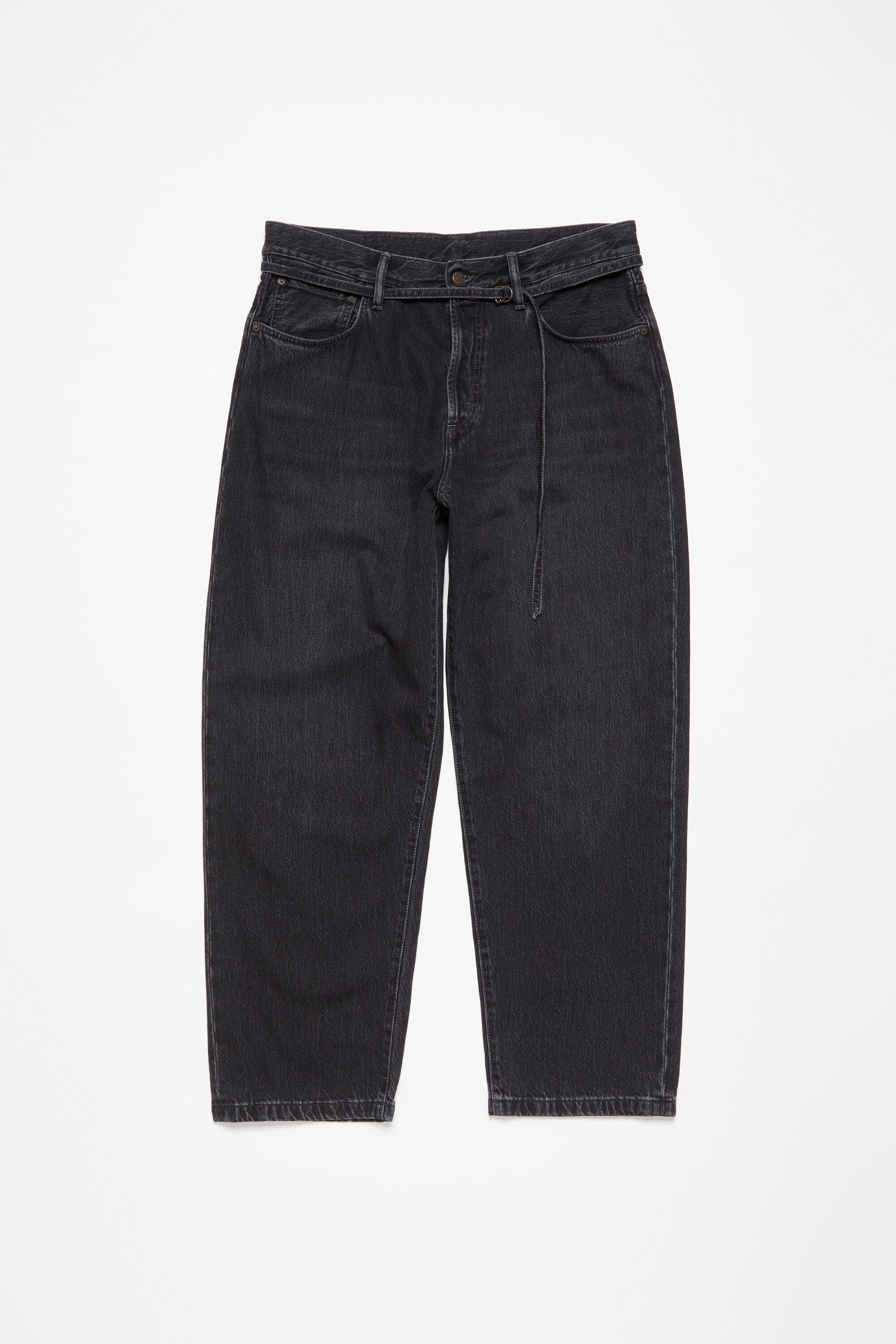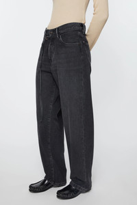 1991 jeans are cut to a loose unisex fit with a low to mid-waist, matching thin belt, straight leg and regular length. Made of rigid denim in deep black overdye with a washed finish. - Loose fit - Low to mid waist - Straight leg - Regular length - Thin belt - 5-pocket construction - Button fly - Female model is 179cm/ 5'11" and wears a size 29/32 - Male model is 185cm/ 6'1" and wears a size 31/34 - Style ID: Acne Studios 1991 Toj Vintage Black - Made from organically grown cotton. - Shell: 100% Organic cotton, Patch: 100% Cow leather