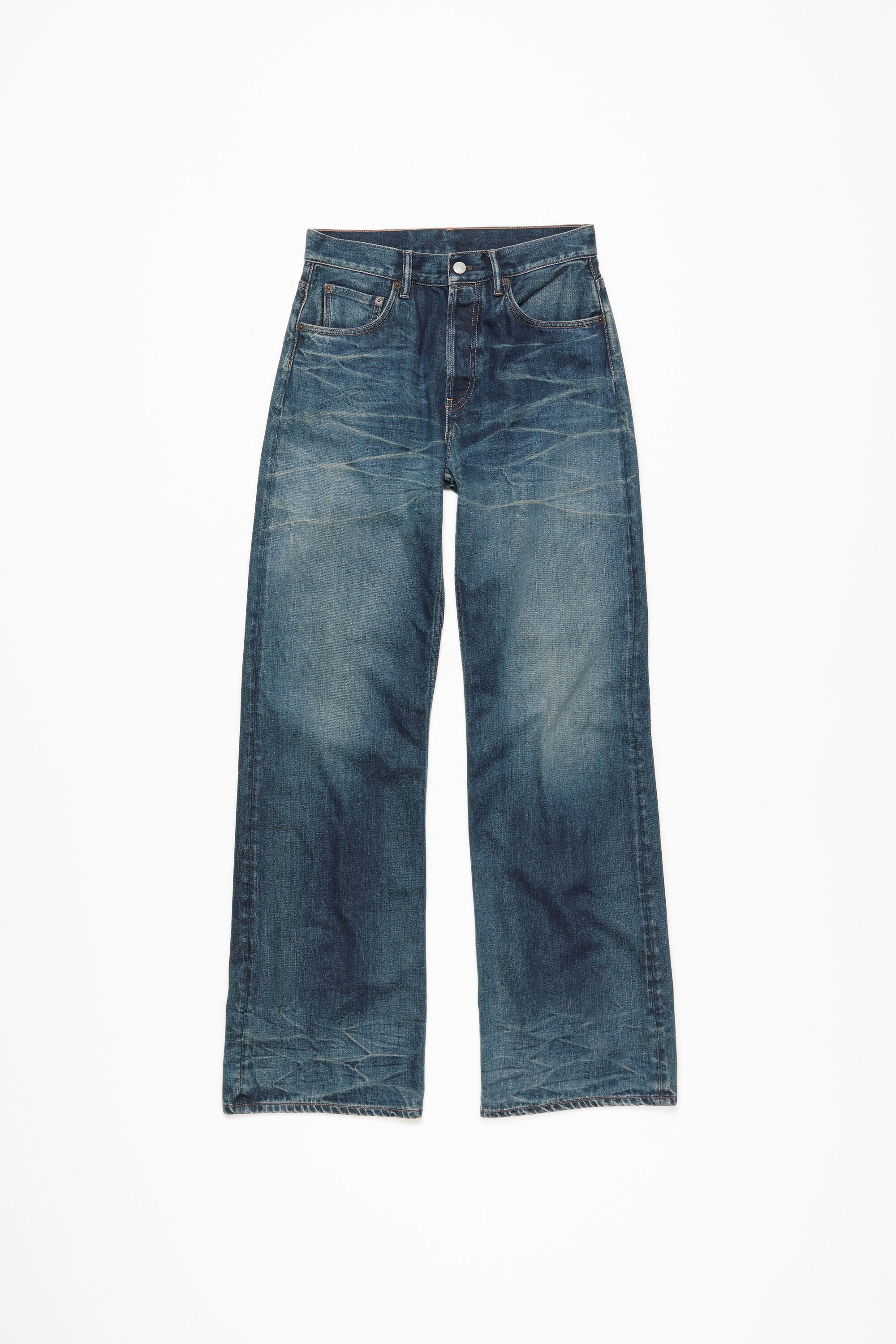 2024 jeans are cut to a loose fit with a mid waist, wide leg and long length. Detailed with a branded leather patch at the back. Made of non stretch denim in a mid blue wash. - Loose fit - Mid waist - Wide leg - Long length - 5-pocket denim construction - Button fly - Model is 179 cm / 5′11 and wears a size 36 - Style ID: Acne Studios 2021F Broadway SS25 - Shell: 80% Organic cotton, 20% Recycled cotton, Patch: 100% Cow leather