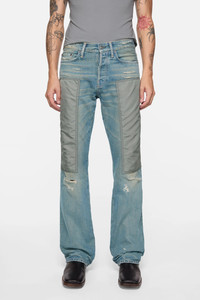 Jeans crafted from organic cotton denim featuring contrasting nylon patchwork, natural creases, and distressed details for an authentically worn-in look. 2010 jeans are cut to a regular fit with a low waist, long length, straight leg, and button fly. - Regular fit - Low waist - Straight leg - Long length - Contrasting nylon patchwork - 5-pocket construction - Button fly - Model is 190 cm / 6'1 and wears Small/Regular: size 46, denim 29 waist/32-34 length. - Style ID: RW-MN-5PKT000002 - Made with organically grown cotton - Shell: 100% Cotton, Contrast: 100% Nylon, Patch: 100% Cow leather