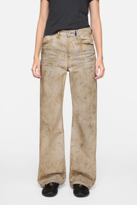 Jeans feature an authentic worn-out look on an indigo base overdyed black, with total fade-out and manual stain details. Every garment will differ. 2021 jeans are cut to a regular fit with a mid waist, long length, wide straight leg, and slight flare from the knee, finished with a button fly. - Regular fit - Mid waist - Long length - Wide straight leg - Button fly - Leather logo patch - Model is 179 cm / 5'8 and wears a size 27/34 - Style ID: Acne Studios 2021F Klondike - Made from organically grown cotton - Shell: 100% Cotton, Patch: 100% Cow leather