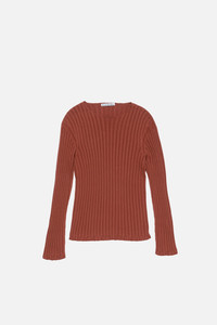Ribbed crewneck knit - Terracotta red