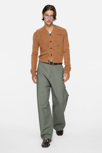 Trousers crafted from smooth cotton satin woven with a double structure for a round, classic hand. Complete with a zip closure, branded military buttons, and a leather logo patch at the back. Cut for a regular fit with a mid waist and long, loose legs. - Regular fit - Mid waist - Long, loose leg - Branded military buttons - Side and back pockets - Acne Studios logo leather patch - Zip closure - Model is 187 cm / 6'1 and wears a size 46 - Style ID: FN-MN-TROU001090 - Made from organically grown cotton - Shell: 100% Cotton, Patch: 100% Cow leather