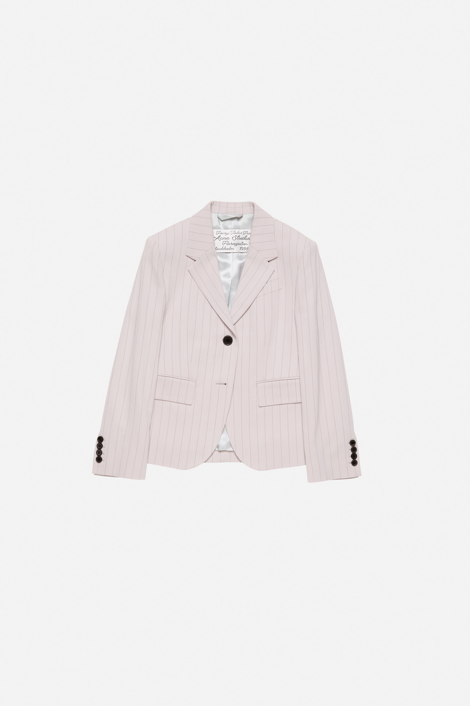 Single-breasted jacket crafted from soft, fluid fabric with a pinstripe pattern. Complete with a center front button closure and front flap pockets. Cut to a fitted silhouette and below-hip length. - Fitted - Below-hip length - Single-breasted - Center front button closure - Front flap pockets - Model is 178 cm / 5'8 and wears a size 36 - Style ID: FN-WN-SUIT000643 - Made in Italy - Shell: 97% Viscose, 2% Elastane, 1% Polyester, Lining: 50% Viscose, 50% Acetate