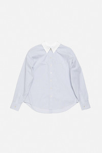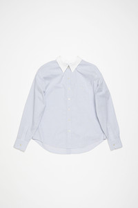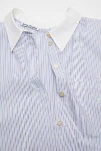 Shirt is characterised by a button-up closure at the front and back, a stripe pattern and logo embroidery at the chest. Cut to a relaxed fit and below hip length. - Relaxed fit - Hip length - Contrast collar - Button-up closure front and back - Acne Studios logo embroidery - Chest pocket - Model is 174 cm / 5′9 and wears a size 36 - Style ID: FN-WN-BLOU001031 - Made from organically grown cotton. - Shell: 100% Cotton, Contrast: 100% Cotton