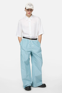 Short sleeve button-up shirt features a stripe pattern crafted from fluid satin fabric and detailed AS logo embroidery. Cut to a relaxed fit and below hip length. - Relaxed fit - Below hip - Short sleeve - Stripe pattern - AS logo embroidery - Button-up closure - Model is 188.5 cm/ 6'2 and wears a size 46 - Style ID: FN-MN-SHIR000780 - Shell: 100% Lyocell