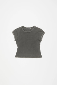Crew neck t-shirt is cut to a fitted unisex fit and a below waist length. Crafted from soft cotton with a garment-dyed finish and contrast binding. Detailed with an Acne Studios logo patch on the centre back. - Fitted unisex fit - Below waist length - Acne Studios rubber logo patch - Female model is 179 cm / 5′11 and wears a size XS - Male model is 188.5 cm / 6'2 and wears a size M - Style ID: FN-UX-TSHI000025 - Made from organically grown cotton. - Shell: 100% Cotton