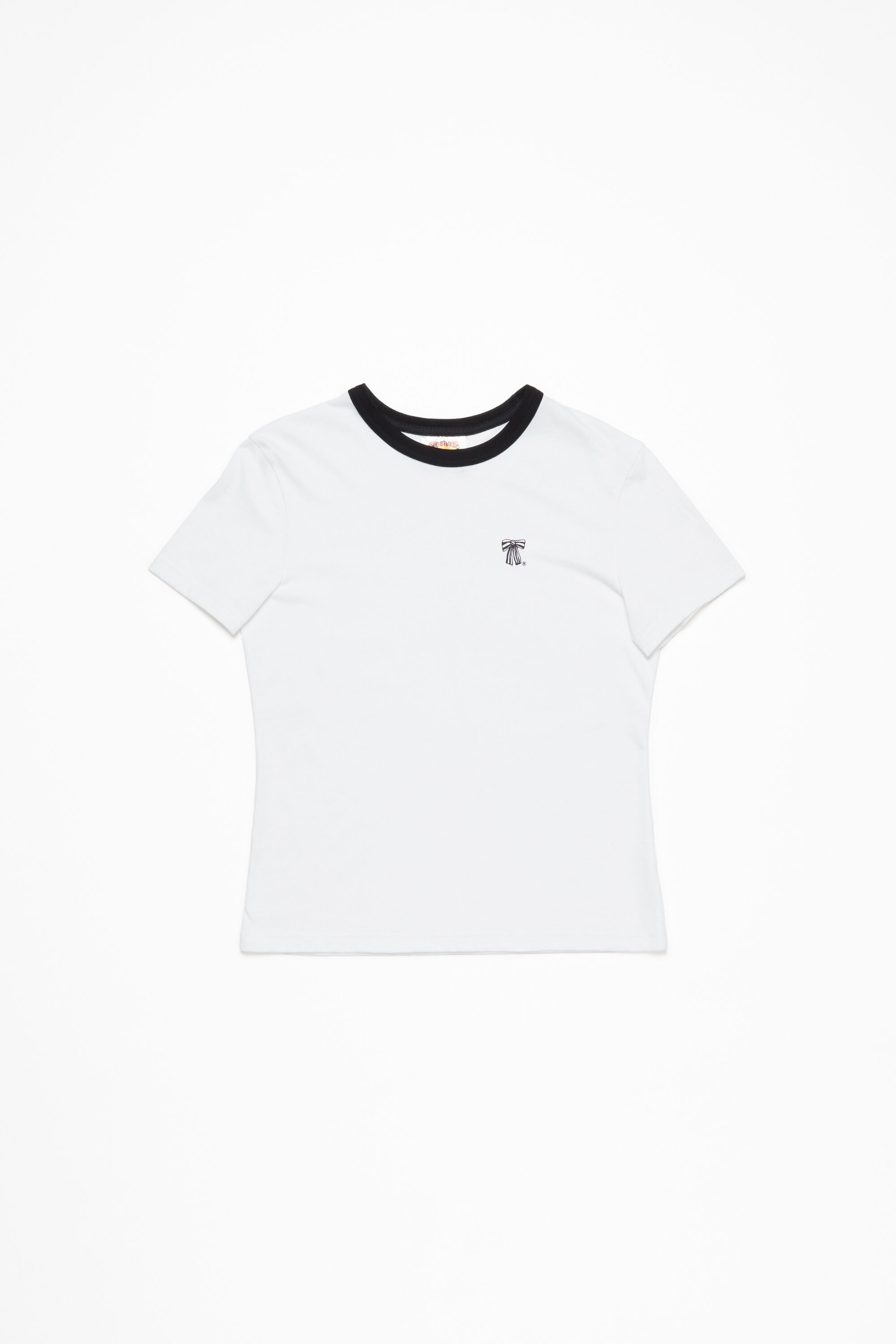 Crew neck t-shirt is crafted lightweight jersey cotton blend. Detailed with a small bow logo at the chest. Cut to a regular unisex fit and hip length. - Regular unisex fit - Hip length - Bow logo - Female model is 178 cm / 5'10 and wears a size S - Male model is 187 cm / 6'1 and wears a size M - Style ID: FN-UX-TSHI000100 - Made with organically grown cotton. - Shell: 80% Organic cotton, 20% Lyocell