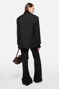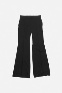 Acne Studios black tailored trousers are crafted from a wool blend, detailed with front topstitched leg pleats and fold-up hem. Complete with side pockets and back welt pockets. Cut to a regular fit with a mid-waist, flared leg and long length. - Regular fit - Mid waist - Flared leg - Long length - Front topstitch pleats - Fold up hem - Side pockets - Back welt pockets - Zip fly - Model is 177 cm / 5′9 and wears a size 36 - Style ID: FN-WN-TROU001062 - Main material made from recycled polyester., Lining made from organically grown cotton. - Shell: 55% Polyester, 45% Wool, Pocket Lining: 100% Cotton