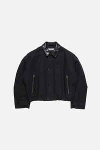 Bomber jacket crafted from smooth cotton satin with a double weave that creates a rounded, classic feel. Features a leather collar, snap button closure, zippered side pockets, tab snap cuffs, and an elasticated hem with drawcord for a gathered effect. Complete with a leather logo patch on the back neckline. Cut to a regular fit and below waist length. - Regular fit - Below waist length - Elasticated waistband with drawcord - Faux leather collar - Acne Studios logo patch - Center snap closure with placket and zipper - Front pockets - Fully lined - Made in Italy - Model is 186 cm / 6'1 and wears a size 46 - Style ID: FN-MN-OUTW001243 - Shell made with organic cotton. Lining made with recycled polyester. - Shell: 100% Cotton, Contrast: 100% Polyester, Lining: 65% Polyester, 35% Cotton, Filling: 100% Polyester, Patch: 100% Cow leather