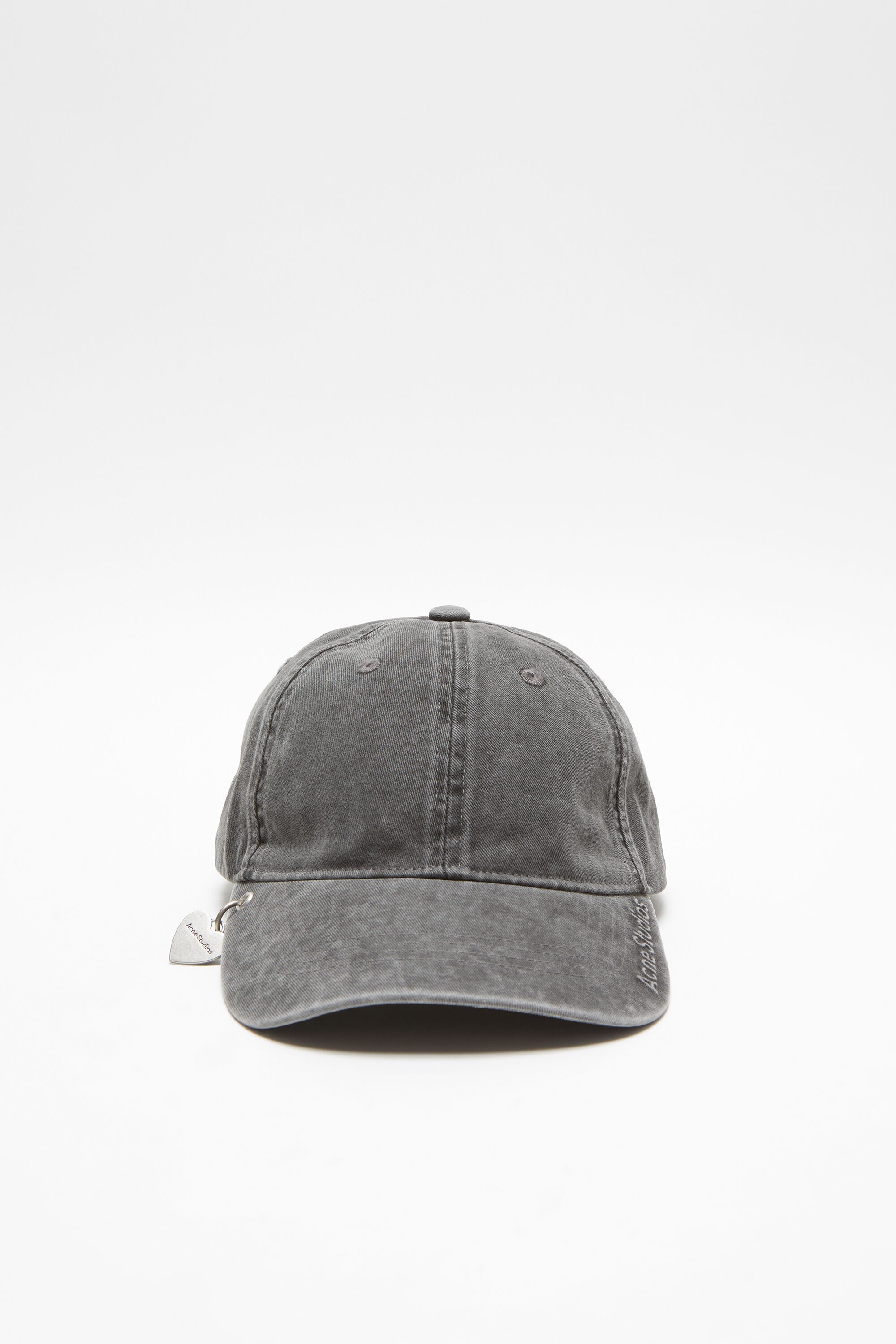 Six-panelled cap adorned with a heart-shaped pendant embossed with an Acne Studios logo, and logo embroidery on the brim. Crafted from a twill cotton with a washed finish and adjustable d-ring closure. - Curved brim - Heart-shaped pendant logo with logo engraving - Acne Studios embroidery - Adjustable d-ring closure - Embroidered eyelets - Unisex Hats One size (59cm) - Style ID: FN-UX-HATS000304 - Shell: 100% Organic cotton, Lining: 100% Cotton