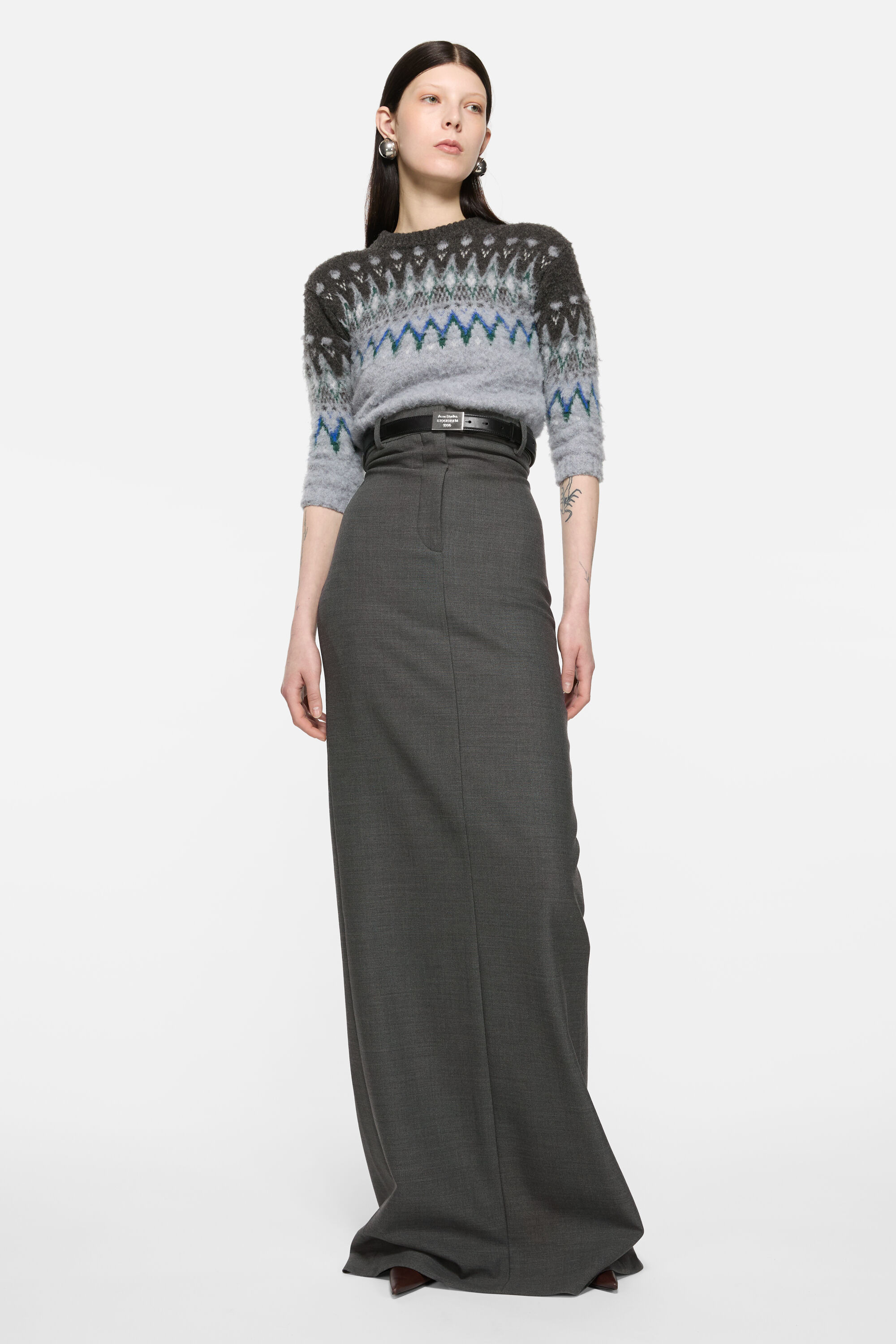 Tailored skirt crafted from a soft-stretch wool blend. Designed with an ultra high waist, back slit, and long length. Cut to a fitted silhouette with a soft hand and comfortable two-way stretch. - Fitted - Ultra high waist - Long length - Back slit - Model is 180 cm / 5'9 and wears a size 36 - Style ID: FN-WN-SKIR000886 - Made in Italy - Shell: 3% Elastane, 97% Wool, Lining: 33% Polyester, 67% Acetate