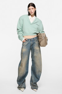 Wool v-neck sweater - Faded mint