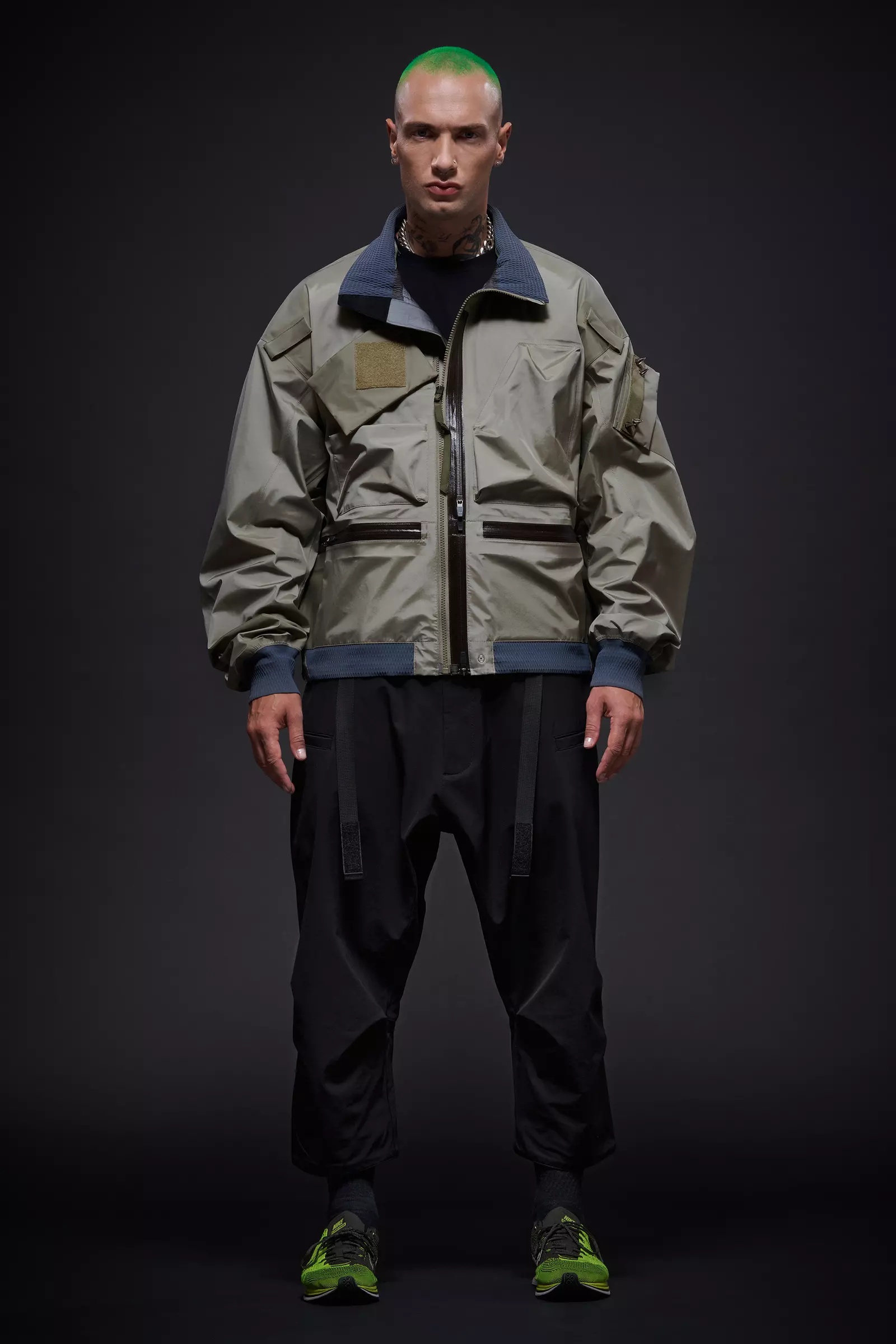 ‘My new jacket can hold the bridge.’ Demi-oversized blouson bomber with asymmetric Interopsǽ compatible pocket layout. Gore-Tex® 3L shell fabric and dimensional flex cuffs. Modular spikes on left shoulder pocket and Jacketslingǽ. Myriad use-driven technical details you will be discovering for years to come. [ Shown in size: M. Fits: WIDE ] Fabric technology GORE-TEX® PRODUCTS WITH PERFORMANCE TECHNOLOGY 3L TRICOT BACKER (100% PA6) 70 denier yarns GUARANTEED TO KEEP YOU DRY™ Sizing Size XS S M L XL 1/2 Chest 51.5 54.5 57.5 60.5 63.5 Length 62 65 68 71 74 Shoulders 23 23.5 24 24.5 25.5 Sleeves 60.5 62.5 64.5 66.5 68.5 All measurements are in centimeters. Weight: 654g (size M, color: Black, including removable parts) Systems ACRONYM INTEROPSǽ (PAT.) Subsystems JacketSlingǽ EscapeZipǽ SpeedLockǽ TensionZipǽ AuxZipǽ ( F ) Pockets: 10 _External: 8 _Internal: 2 Includes JacketSlingǽ [ Removable ] Spike tape [ Removable ] Interface with All ACRONYM INTEROPSǽ bags All ACRONYM AuxZipǽ ( M ) units Actual product may differ from images.
