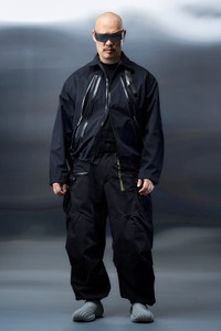 Zeitgeist in the shell. J127-GT is a Next-Gen GORE-TEX Pro jacket with the ability to shift between 2 silhouettes. The adjustable aperture-like taper zip shifts the jacket from relaxed and utilitarian, to high-speed, low-drag, and low-profile. The new fit block maintains full freedom of motion in either case. The extended front pocket TensionZipsǽ follow the lines of the taper, and also house internal patch pockets in hand-warming schoeller® WB-400 softshell. The trajectory of the ZipSlingǽ unifies the front and back of the jacket, and, when slung, the left front pockets remain directly accessible. Standard above-standard ACRONYM features and finish result in a durable and adaptable shell for the current age. [ Fits: STRAIGHT/PROFILE (Tapered) ] Shown in size: M (Delia, 175 cm. Errolson, 183 cm.) Next-Gen GORE‑TEX Pro Products feature a three-layer construction: resistant face fabric treated with PFAS-free* durable water repellent (DWR), ePE Gore-Tex membrane, and robust MICRO-GRID® backer. The solution-dyed MICRO-GRID® backer is made from lightweight nylon specifically designed for layering. Both the inner and outer fabrics are engineered to resist snags and abrasion, offering maximum protection in rugged conditions. *Made without intentionally added per- and polyfluorinated substances. May contain trace amounts. Fabric technology 3L GORE-TEX® PRO _(Face fabric: 100% Polyamide [REC], Membrane: expanded polyethylene, Backer: 100% Polyamide 6) _Solution dyed Micro Grid™ backer with texturized filament yarn _GUARANTEED TO KEEP YOU DRY™ 3L GORE-TEX® PRO _(Oberstoff: 100% Polyamid [Recycled], Membran: expandiertes Polyethylen, Innenfutter: 100% Polyamid 6) _Spinngefarbt Micro Grid™ Innenfutter mit texturierten filamentgarn _GUARANTEED TO KEEP YOU DRY™ Sizing Size XS S M L XL 1/2 Chest 61 64 67 70 73 Length 64 67 70 73 76 Shoulders 20 20.5 21 21.5 22 Sleeves 61 63 65 67 69 All measurements in centimeters. Weight: 590g (size M, color Black) Systems ACRONYM SOUNDǽ (PAT.) Subsystems ForceLockǽ ZipSlingǽ SpeedLockǽ AuxZipǽ ( F ) TensionZipǽ Pockets: 4 _External: 2 _Internal: 2 Includes ForceLockǽ [ Removable ] Storm Hood [ Removable ] Logo Tape [ Removable ] Interface with All ACRONYM AuxZipǽ ( M ) units Actual product may differ from images. Price including VAT and excluding shipping costs.
