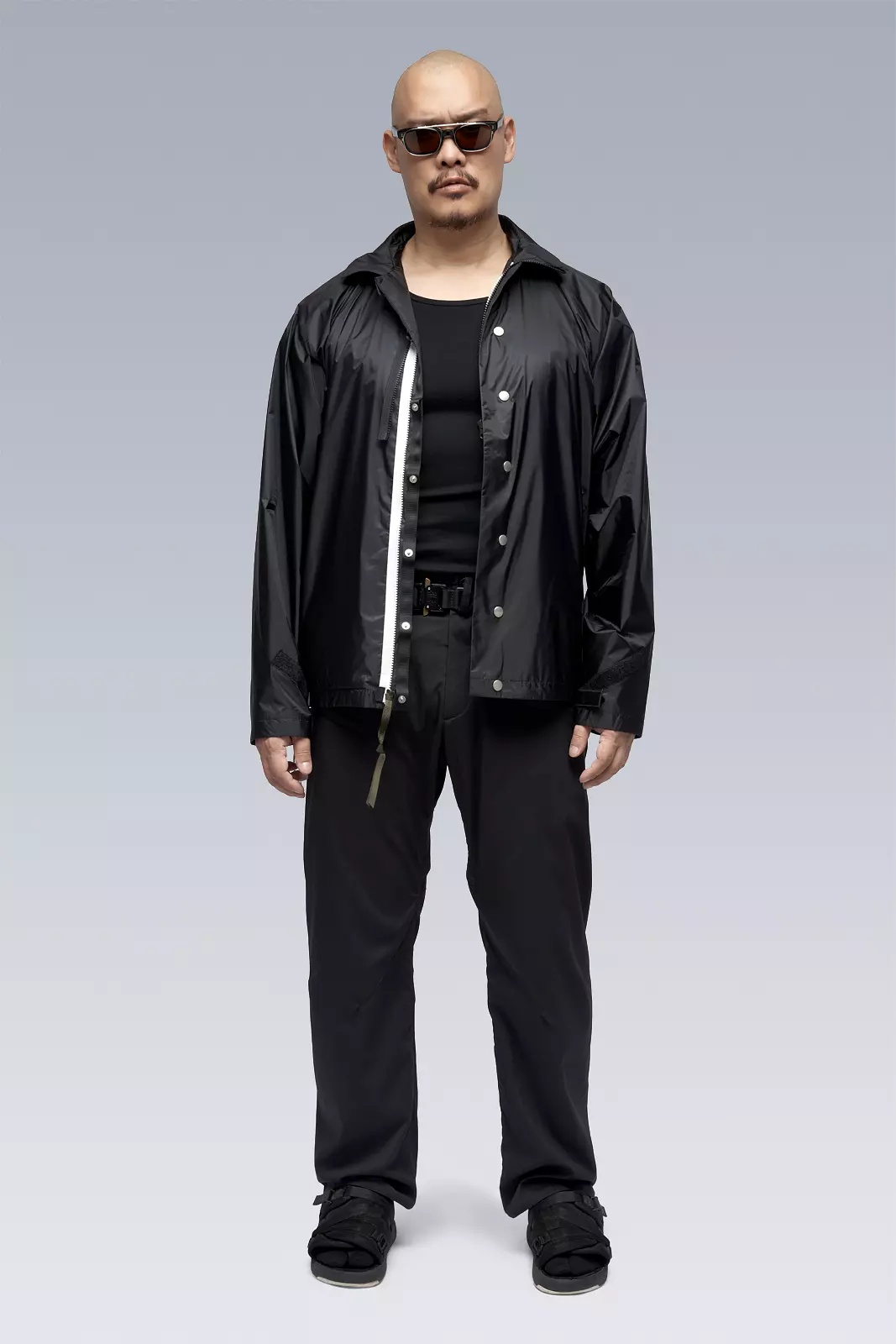 The perfect coach jacket. The J95-WS takes all the simplicity, attitude, and versatility of this ubiquitous staple, and injects it with the motion optimised and utility expanding DNA of ACRONYM. The 2-stage centre-front features EscapeZipǽ for swift entry and exit, as well as web tape mounted press buttons for one handed operation. An ingenious additional zipper converts the collar for full neck protection. The perfectly placed external pockets have bi-lateral pocket bags for maximum storage, while the internal security pockets are set in holster position allowing stable carry despite the jacket's lightweight construction and feel. The Speedlockǽ shockcord hem allows for rapid silhouette changes and air compartmentalization. Built in 2L GORE-TEX INFINIUM™ with WINDSTOPPER® technology and lined with 4-way stretch mesh, J95's luster and drape are a direct result of it's material sophistication. [ Shown in size: M. Fits: STRAIGHT ] Fabric technology 2L GORE-TEX INFINIUM™ WINDSTOPPER® (43% PA, 57% ePTFE) Mesh Body Lining (86% Recycled PA, 14% EL) Lining Sleeves (100% PA) Sizing Size XS S M L XL 1/2 Chest 55 58 61 64 67 Length 66 69 72 75 78 Shoulders 23 23.5 24 24.5 25 Sleeves 54 56 58 60 62 All measurments in centimeters. Weight: 440g (size M, color: Black, including removable parts) Systems ACRONYM SOUNDǽ (PAT.) Subsystems ForceLockǽ JacketSlingǽ EscapeZipǽ SpeedLockǽ AuxZipǽ ( F ) Pockets: 4 _External: 2 _Internal: 2 Includes ForceLockǽ [ Removable ] JacketSlingǽ [ Removable ] Logo tape [ Removable ] Interface with All ACRONYM AuxZipǽ ( M ) units Actual product may differ from images.