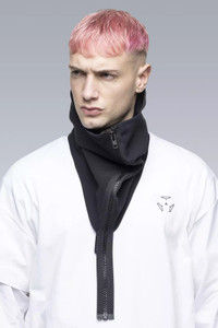 Deffest baddest neck gaiter of all time. Zipped up, NG4's unique ergonomic pattern fully encloses face, neck, and ears for warmth and concealment. Unzipped, it drapes around the neck like a scarf; the weight of the size 8 metal zipper naturally holding it in place. As unorthodox as it is effective. Gen 1.2 features a revised pattern and construction to decrease fabric waste, and an AuxZip ( M ) to ( M ) adapter zip, allowing it to be docked to both shell and liner garments for the first time. Can be worn inside/under jackets with large collars and hoods, or outside/over jackets with short/no collars. Fabric technology schoeller® WB-400™ 3XDRY® Softshell (45% PA, 40% PES, 11% PU, 4% EL) Fabric made in Switzerland Sizing One size Weight: 145g Includes Adapter AuxZipǽ ( M ) to ( M ) [ Removable ] Interface with All ACRONYM AuxZipǽ ( F ) All ACRONYM AuxZipǽ ( M ) units with adapter Actual product may differ from images.