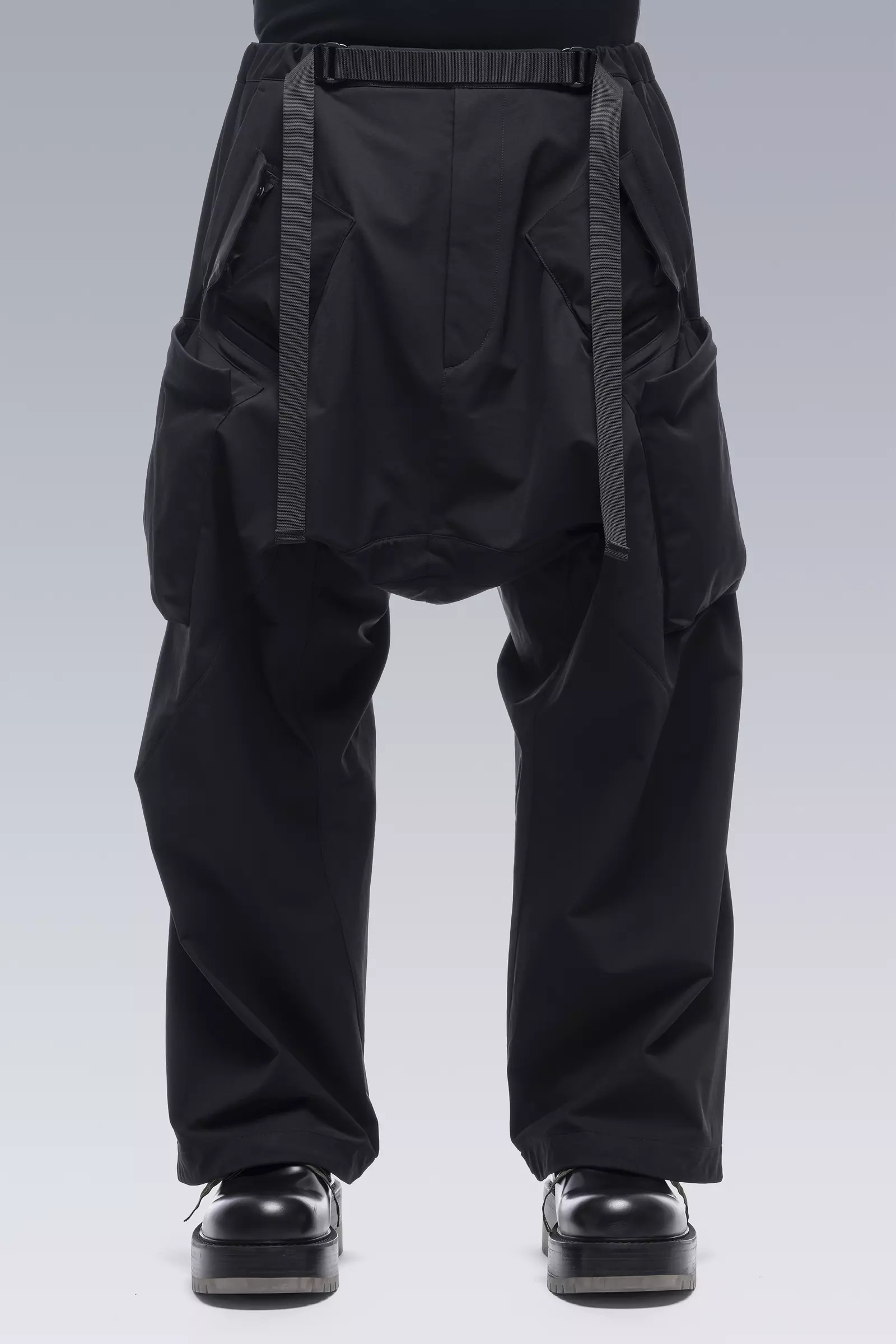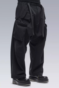 P30AL-DS is a silhouette variant of ACRONYM’s most celebrated wide-spectrum pant. While the fit mechanics remain, the visual stance of the pant has been tweaked; trading the layered 3/4 leg for one with a generous, full-length, adjustable drawcord hem. Combining the freedom of movement of the ǍCRŇMř edge to edge fit block with the utility of a raid-type BDU cargo trouser; P30A is a convertible, ultrawide, zero-resistance utility pant. Featuring a distributed storage array of 14 pockets, articulated knees, an updated integrated fully-adjustable QLQRǽ waistband, and a one-handed QLQRǽ waistband release tab. The most comfortable cargo pant we have ever made. QLQRǽ waistband cinches down from oversize and locks in securely. XS = +28. S = +30. M = +32. L = +34. XL = +36 P30A-DS is made in heavyweight schoeller® 3XDRY® Dryskin™; abrasion resistant, water repellent, 4-way stretch, moisture managing, and fast drying. Optimal for all season use. [ Shown in size: M. Fits: ULTRAWIDE ] Fabric technology schoeller® 3XDRY® DRYSKIN™ (205 g/m²) _(91% PA, 9% EL) _Made in Switzerland Sizing Size XS S M L XL 1/2 Waist 48.5 50.5 52.5 54.5 56.5 1/2 Hem 27.4 27.9 28.4 28.9 29.4 Inseam 69.8 71.8 73.8 75.8 77.8 Outseam 93.5 96.5 99.5 102.5 105.5 All measurements in centimeters. Weight: 788g (size M, color Black) Subsystems Deep Pocketsǽ QLQRǽ Web Waistband _25 MM mil-spec webbing _Release Tab [ Removable ] Pockets: 14 _External: 10 _Internal: 4 Includes Release Tab [ Removable ] Actual product may differ from images.