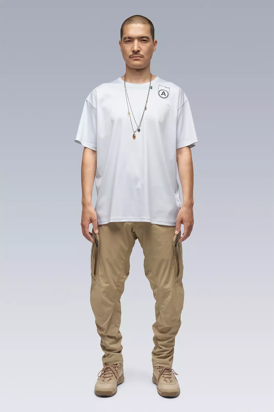 HEXAGONAL. Custom fit mercerized cotton interlock short sleeve t-shirt with front and back prints. [ Shown in size: M. Fits: STRAIGHT ] Fabric technology 100% Cotton (165 g/m²) Mercerized Interlock Made in Portugal Sizing Size XS S M L XL 1/2 Chest 56 59 62 65 68 Length 70 73 76 79 82 Shoulders 18.5 19 19.5 20 20.5 Sleeves 18 20 22 24 26 All measurements in centimeters. Weight: 220g (size M, color Black) Actual product may differ from images.