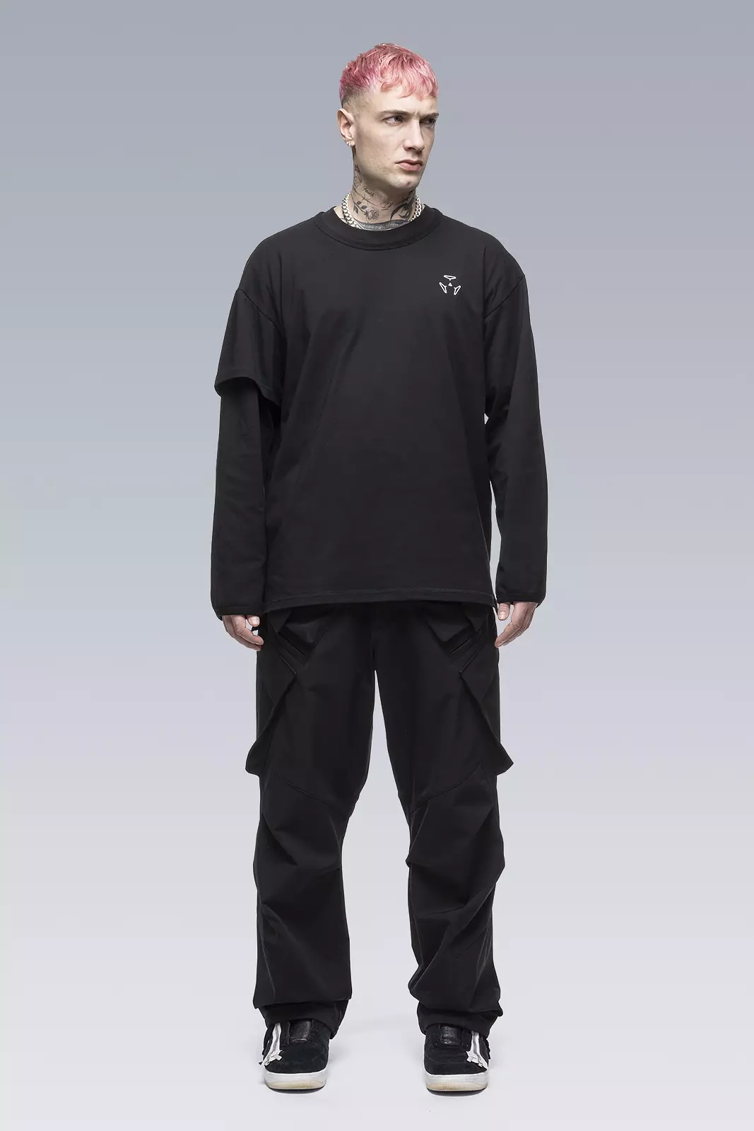 Custom fit organic cotton asymmetric long sleeve t-shirt with front and back prints. [ Shown in size: M. Fits: STRAIGHT ] Fabric technology ORGANIC JERSEY (100% CO) Made in Portugal Sizing Size XS S M L XL 1/2 Chest 56 59 62 65 68 Length 69 72 75 78 81 Shoulders 19 19,5 20 20,5 21 Sleeves 55 57 59 61 63 All measurements in centimeters. Weight: 316g (size M, color Black) Actual product may differ from images.