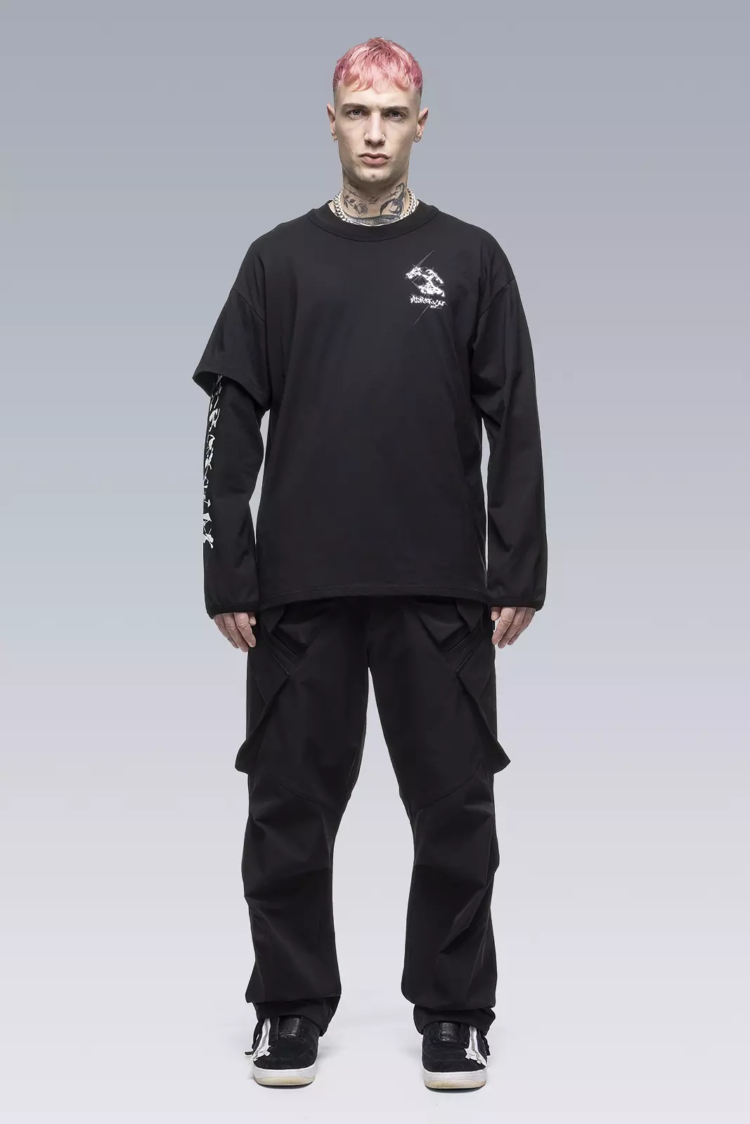 Custom fit organic cotton asymmetric long sleeve t-shirt with front, and right sleeve prints. [ Shown in size: M. Fits: STRAIGHT ] Fabric technology ORGANIC JERSEY (100% CO) Made in Portugal Sizing Size XS S M L XL 1/2 Chest 56 59 62 65 68 Length 69 72 75 78 81 Shoulders 19 19,5 20 20,5 21 Sleeves 55 57 59 61 63 All measurements in centimeters. Weight: 316g (size M, color Black) Actual product may differ from images.