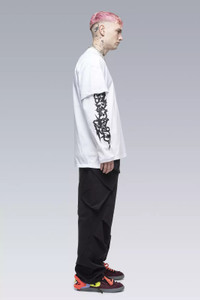 Custom fit organic cotton asymmetric long sleeve t-shirt with front, and right sleeve prints. [ Shown in size: M. Fits: STRAIGHT ] Fabric technology ORGANIC JERSEY (100% CO) Made in Portugal Sizing Size XS S M L XL 1/2 Chest 56 59 62 65 68 Length 69 72 75 78 81 Shoulders 19 19,5 20 20,5 21 Sleeves 55 57 59 61 63 All measurements in centimeters. Weight: 316g (size M, color Black) Actual product may differ from images.