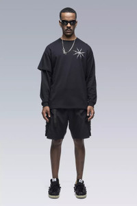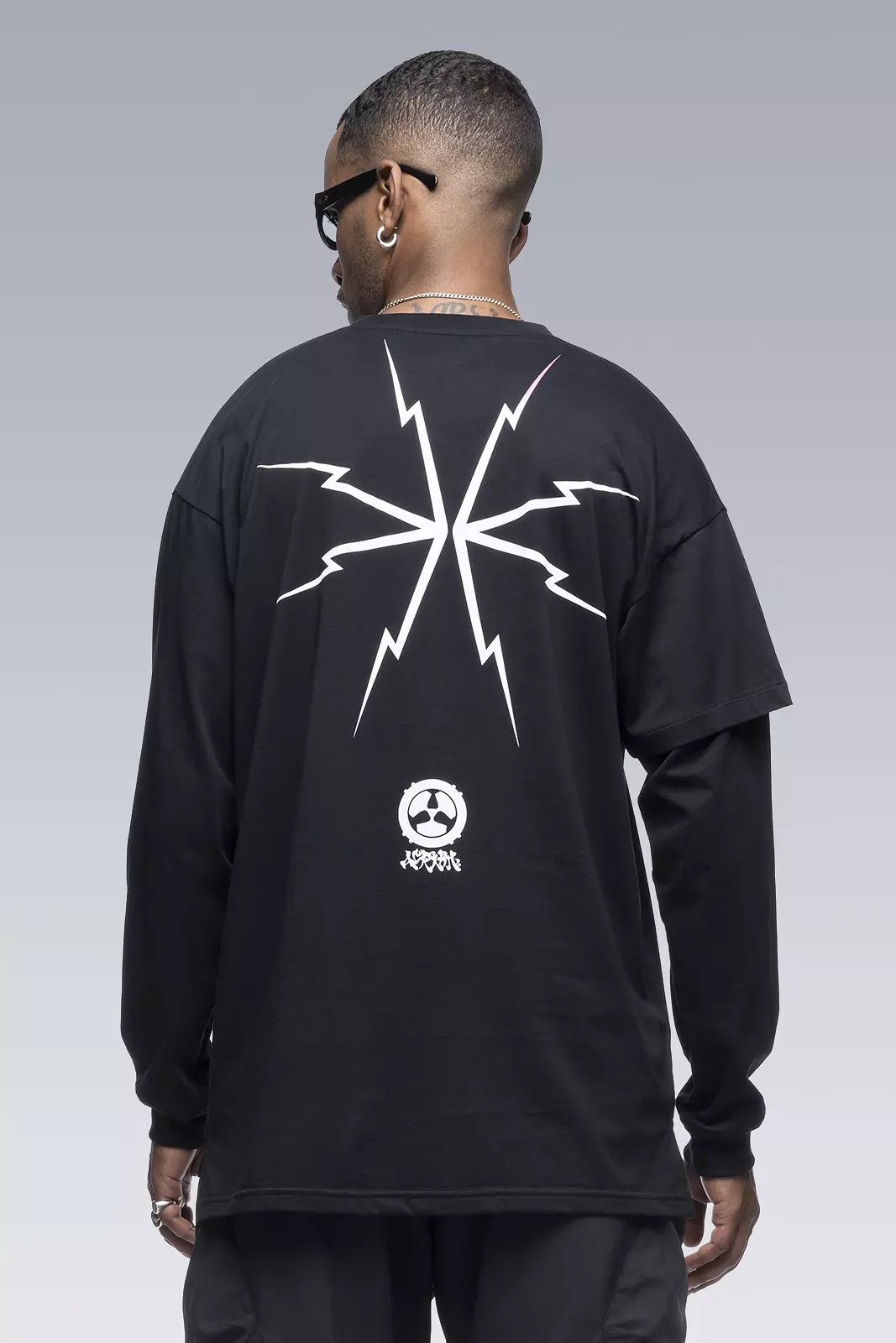 Custom fit pima cotton long sleeve t-shirt with asymmetric right side double sleeve. [ Shown in size: M. Fits: STRAIGHT ] Fabric technology 100% Pima CO Silk screen print with water-based ink Sizing Size XS S M L XL 1/2 Chest 54 57 60 63 66 Length 73 75 77 78 80 Shoulders 19.5 20 20.5 21 21.5 Sleeves 54.5 56.5 58.5 60.5 62.5 All measurements in centimeters. Weight: 240g (size M, color Black) Actual product may differ from images.