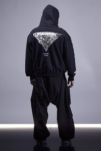 Hooded sweatshirt made of 100% Cotton. Enzyme Washed. Markings in plastisol-based, dulled ink. Oven-cured and silk screened by hand in Los Angeles, California. Seven screens, one embroidery. Markings are double screened with a flash process. With graphic and typographic design by Ian Wang and Raf Rennie. [ Shown in size: L. Fits: STRAIGHT ] Fabric technology Super Heavy Duty 100% Cotton (15 oz/yd²) Enzyme washed Made in USA Sizing Size S M L XL XXL 1/2 Chest 56.5 58.5 63.5 69.5 73 Length 61 64 67 69 70 Shoulders 10.5 12.5 14.5 17.5 18.5 Sleeves 63 64 66 67 68 All measurements in centimeters. Weight: 1000g (size M, color Black) Actual product may differ from images.