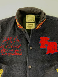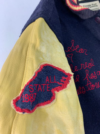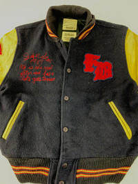 CONDITION: Worn (9/10). Has bobble MEASUREMENT: TAG SIZE: Fits M/L (PLEASE SEE MEASUREMENTS) ARMPIT TO ARMPIT: 23 INCHES LENGTH: 26.5 INCHES SLEEVE LENGTH: 19 INCHES MATERIAL : Cotton/Leather/Wool NOTE : “Please see the pictures for details.” *Please provide TELEPHONE NUMBER after purchased, I need to fill the postage form for delivery process. Thank you. Code: P030