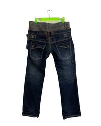 Distressed Denim - Hype Japanese Brand Double Waist Black Distressed Rip Denim