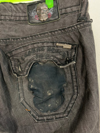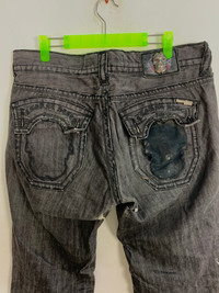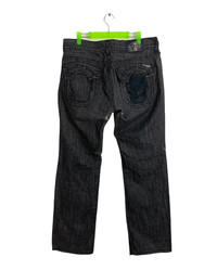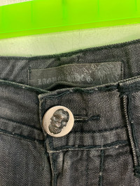 Distressed Denim - Rare Laguna Beach Jean Co Distressed Black Denim Skull Logo