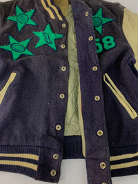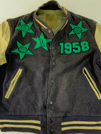 Golden Bear - 80s Rare Golden Bear 1958 Leather Sleeve Jacket Snap Button
